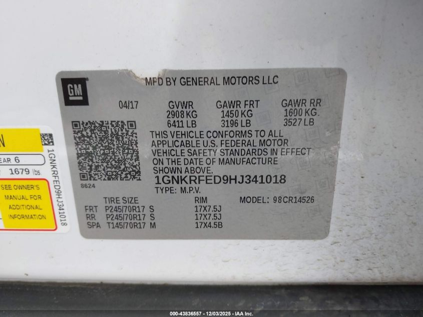 2017 CHEVROLET TRAVERSE 2017 року Бензин, 3.6, Передний привод, vin - 1GNKRFED9HJ341018 из США