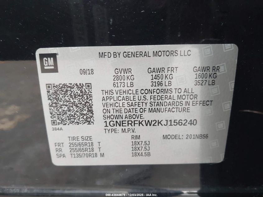 2019 CHEVROLET TRAVERSE 2019 року Бензин, 3.6, Передний привод, vin - 1GNERFKW2KJ156240 из США
