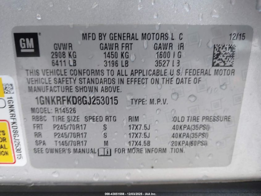 2016 CHEVROLET TRAVERSE 2016 року Бензин, 3.6, Передний привод, vin - 1GNKRFKD8GJ253015 из США