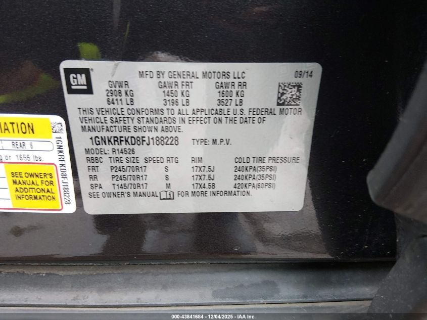 2015 CHEVROLET TRAVERSE 2015 року Бензин, 3.6, Передний привод, vin - 1GNKRFKD8FJ188228 из США