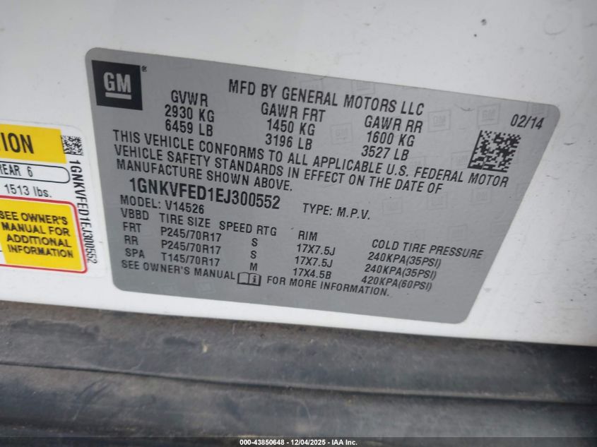 2014 CHEVROLET TRAVERSE 2014 року Бензин, 3.6, Полный привод, vin - 1GNKVFED1EJ300552 из США