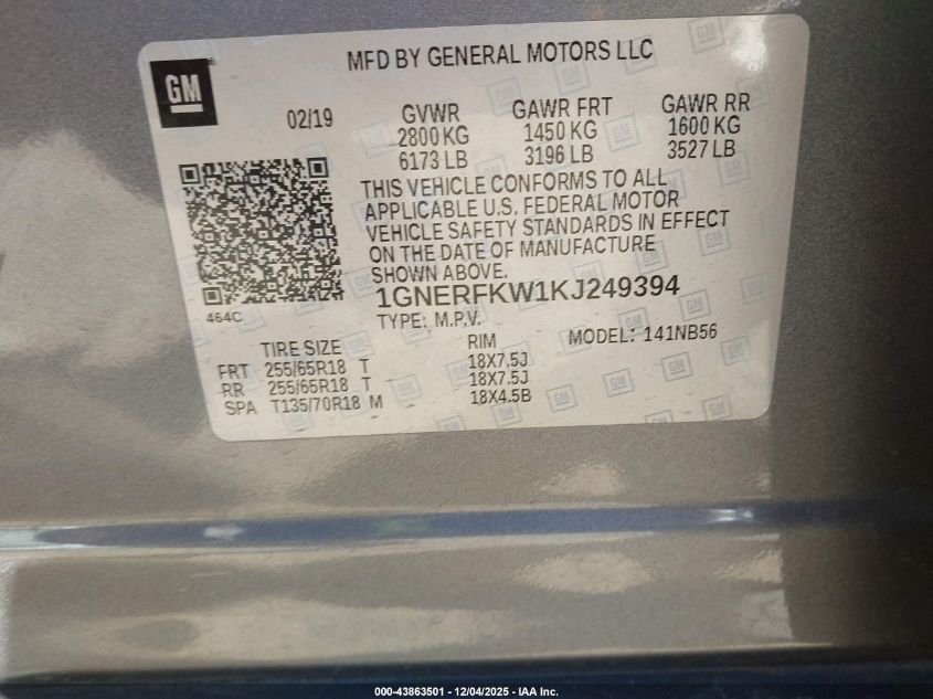 2019 CHEVROLET TRAVERSE 2019 року Бензин, 3.6, Передний привод, vin - 1GNERFKW1KJ249394 из США