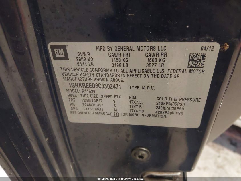 2012 CHEVROLET TRAVERSE 2012 року Бензин, 3.6, Передний привод, vin - 1GNKREED6CJ302471 из США