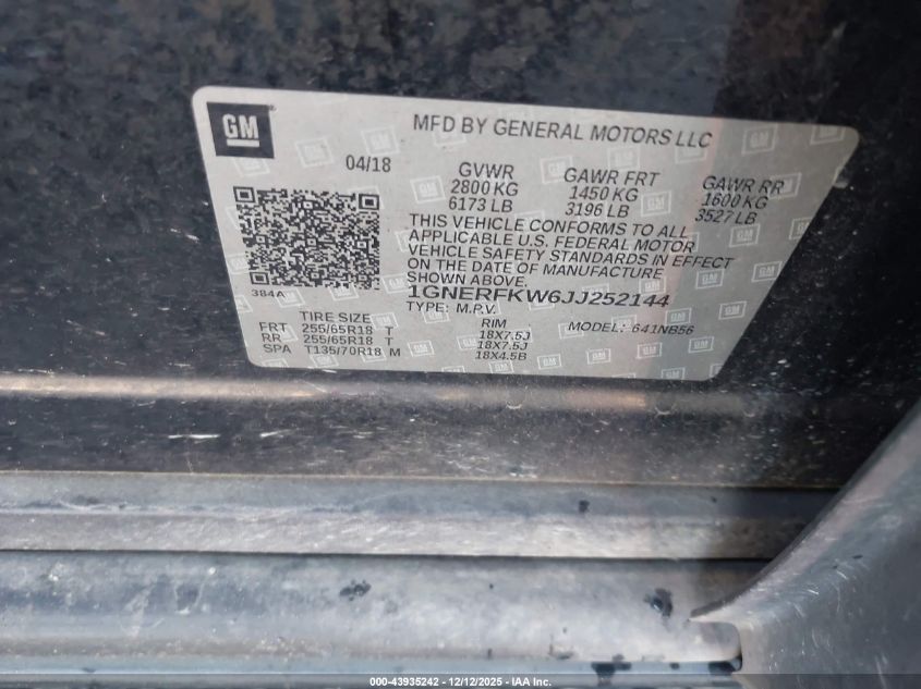 2018 CHEVROLET TRAVERSE HIGH COUNTRY