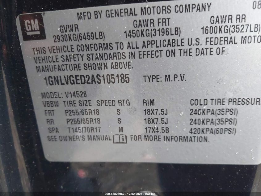 2010 CHEVROLET TRAVERSE 2010 року Бензин, 3.6, Полный привод, vin - 1GNLVGED2AS105185 из США