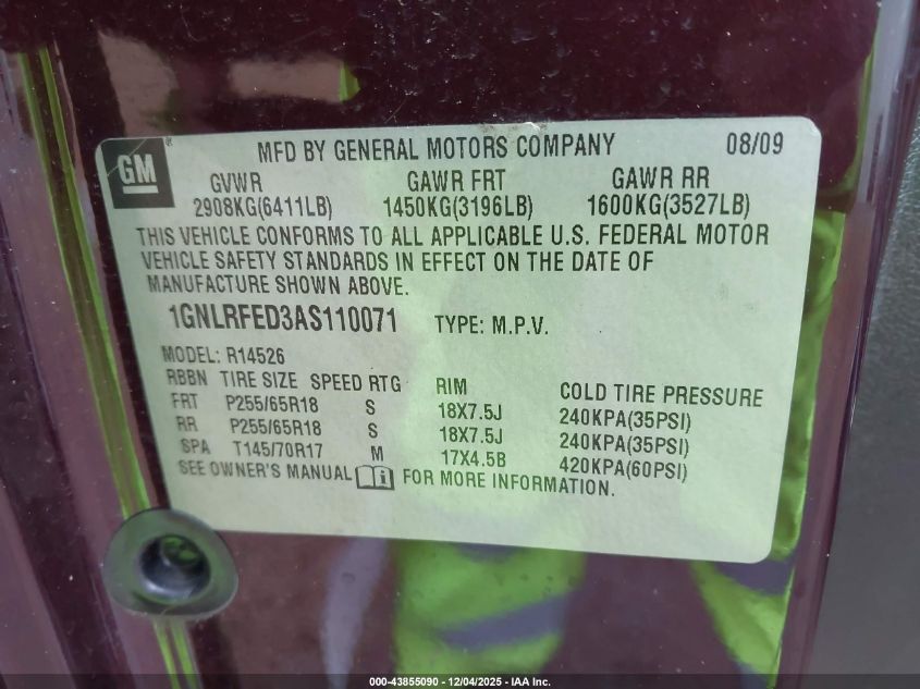 2010 CHEVROLET TRAVERSE 2010 року Бензин, 3.6, Передний привод, vin - 1GNLRFED3AS110071 из США
