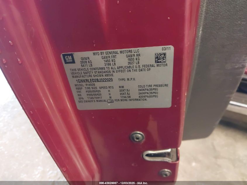 2011 CHEVROLET TRAVERSE 2011 року Бензин, 3.6, Передний привод, vin - 1GNKRLED2BJ322929 из США