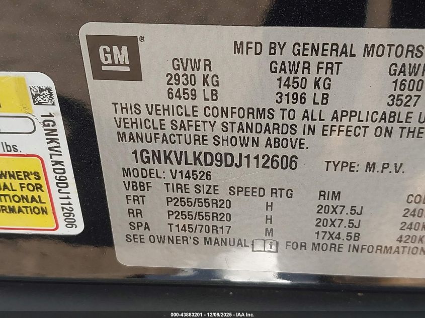 2013 CHEVROLET TRAVERSE 2013 року Бензин, 3.6, Полный привод, vin - 1GNKVLKD9DJ112606 из США