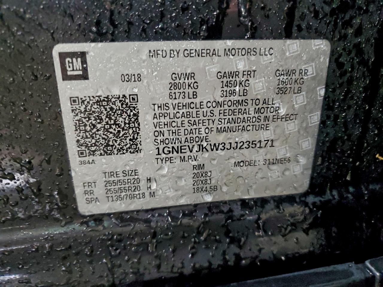 Цвет ЧерныйЦилиндры 6Привод Полный приводVIN 1GNEVJKW3JJ235171Состояние Заводится и едет (проверено)Повреждения Задняя AutoRIA