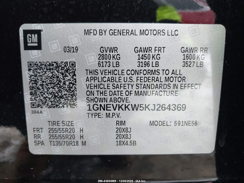 2019 CHEVROLET TRAVERSE 2019 року Бензин, 3.6, Полный привод, vin - 1GNEVKKW5KJ264369 из США