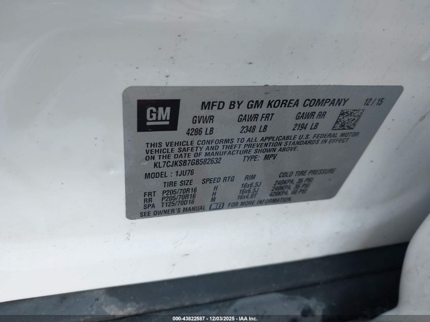 2016 CHEVROLET TRAX 2016 року Бензин, 1.4, Передний привод, vin - KL7CJKSB7GB582632 из США