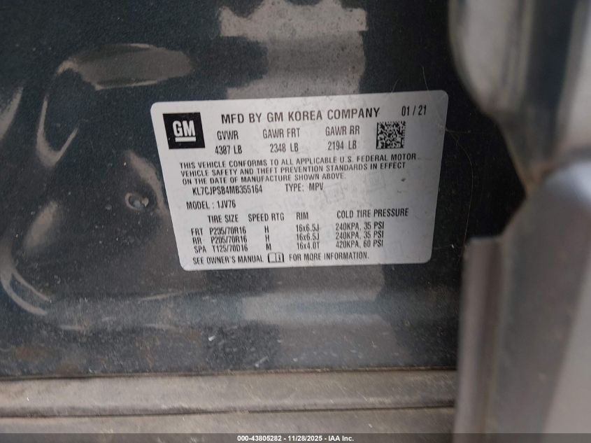 2021 CHEVROLET TRAX 2021 року Бензин, 1.4, Полный привод, vin - KL7CJPSB4MB355164 из США