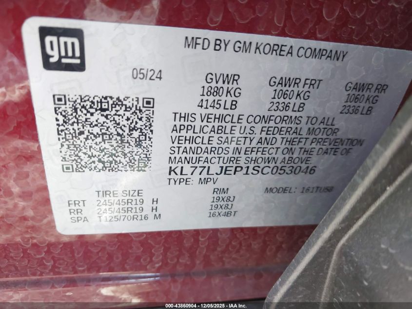 2025 CHEVROLET TRAX 2025 року Бензин, 1.2, Передний привод, vin - KL77LJEP1SC053046 из США