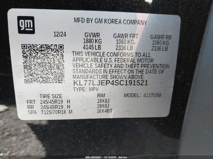 2025 CHEVROLET TRAX 2025 року Бензин, 1.2, Передний привод, vin - KL77LJEP4SC191521 из США