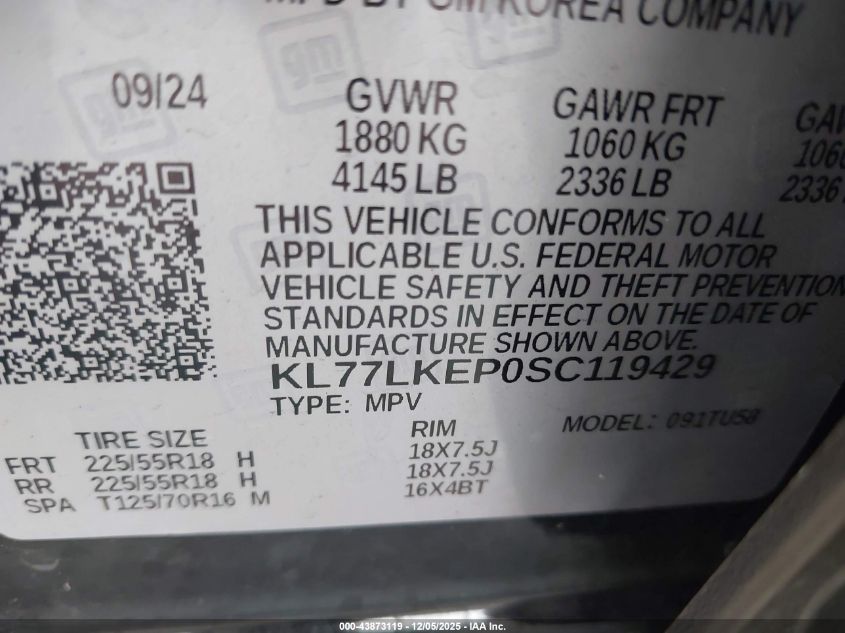 2025 CHEVROLET TRAX 2025 року Бензин, 1.2, Передний привод, vin - KL77LKEP0SC119429 из США