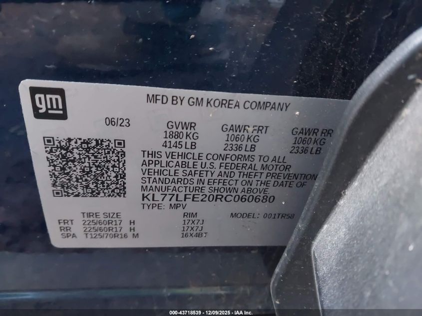 2024 CHEVROLET TRAX 2024 року Бензин, 1.2, Передний привод, vin - KL77LFE20RC060680 из США