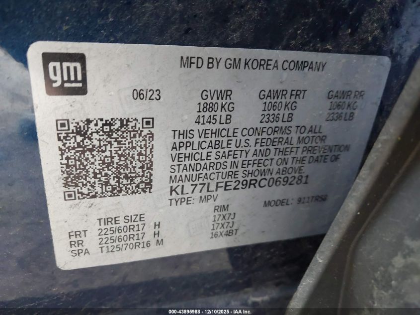 Цвет СинийЦилиндры 3Привод Передний приводVIN KL77LFE29RC069281Состояние Заводится и едет (проверено)Повреждения Передняя левая AutoRIA
