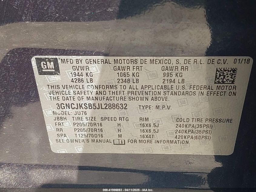 2018 CHEVROLET TRAX 2018 року Бензин, 1.4, Передний привод, vin - 3GNCJKSB5JL288632 из США