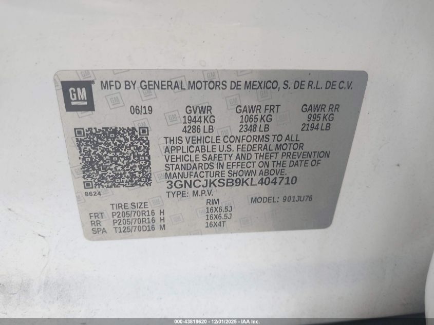 Цвет БелыйЦилиндры 4Привод Передний приводVIN 3GNCJKSB9KL404710Состояние Заводится и едет (проверено)Повреждения Передняя или задняя AutoRIA
