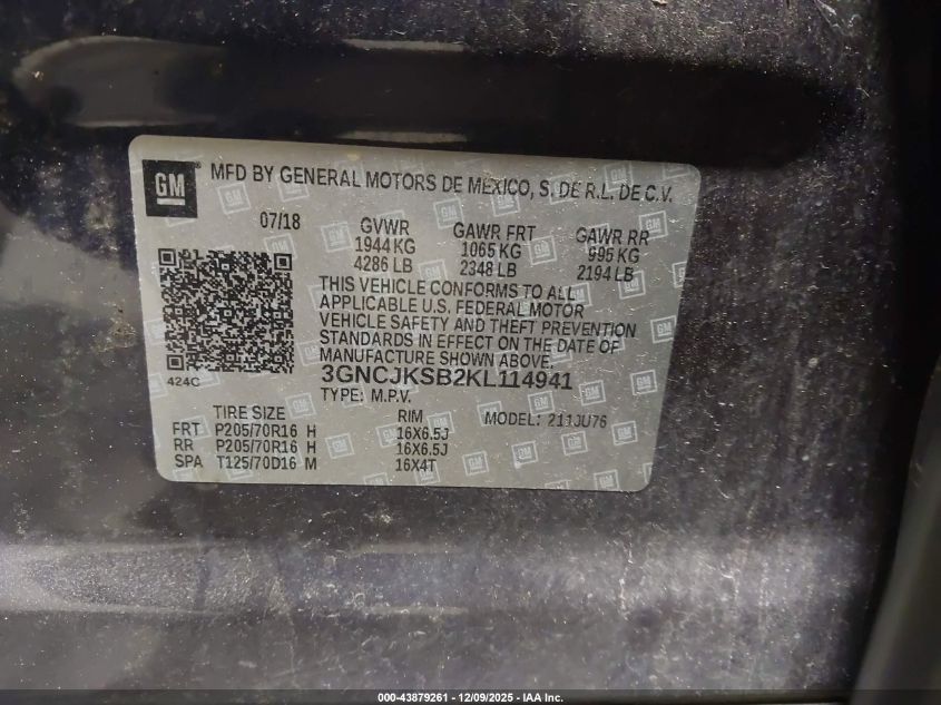 2019 CHEVROLET TRAX 2019 року Бензин, 1.4, Передний привод, vin - 3GNCJKSB2KL114941 из США