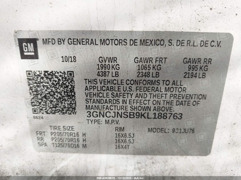 2019 CHEVROLET TRAX 1LT