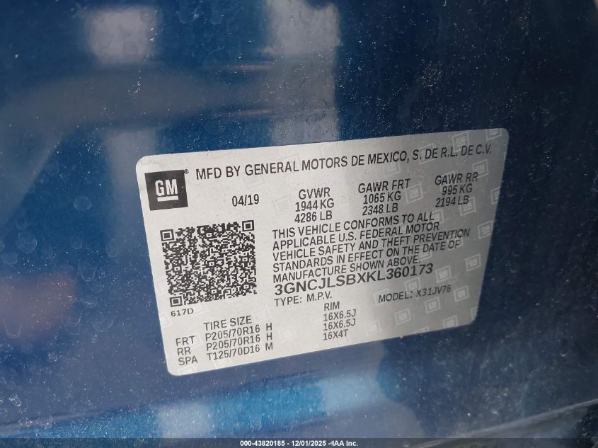 2019 CHEVROLET TRAX 2019 року Бензин, 1.4, Передний привод, vin - 3GNCJLSBXKL360173 из США