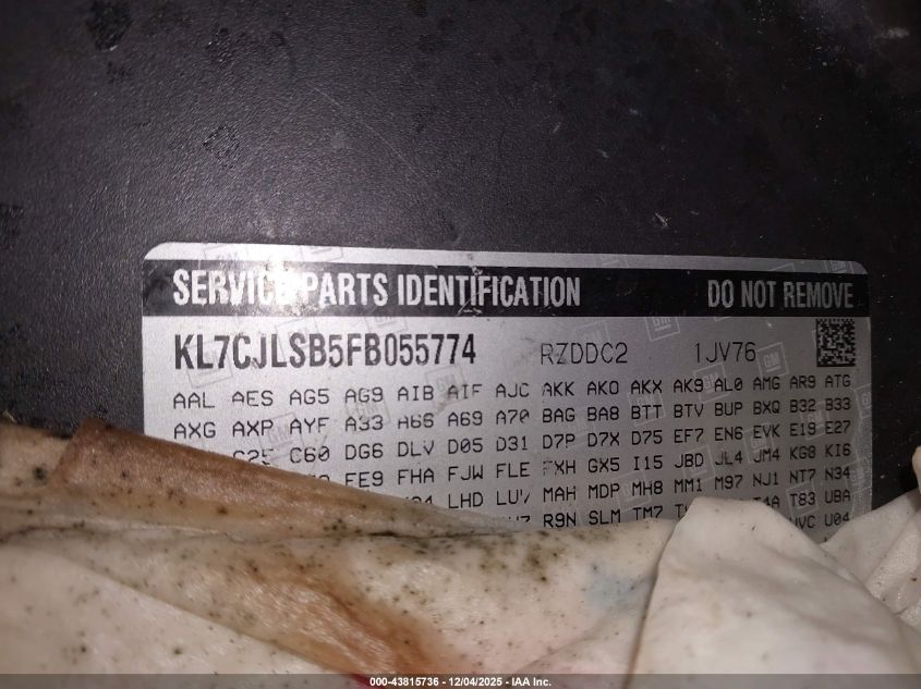 2015 CHEVROLET TRAX 2015 року Бензин, 1.4, Передний привод, vin - KL7CJLSB5FB055774 из США
