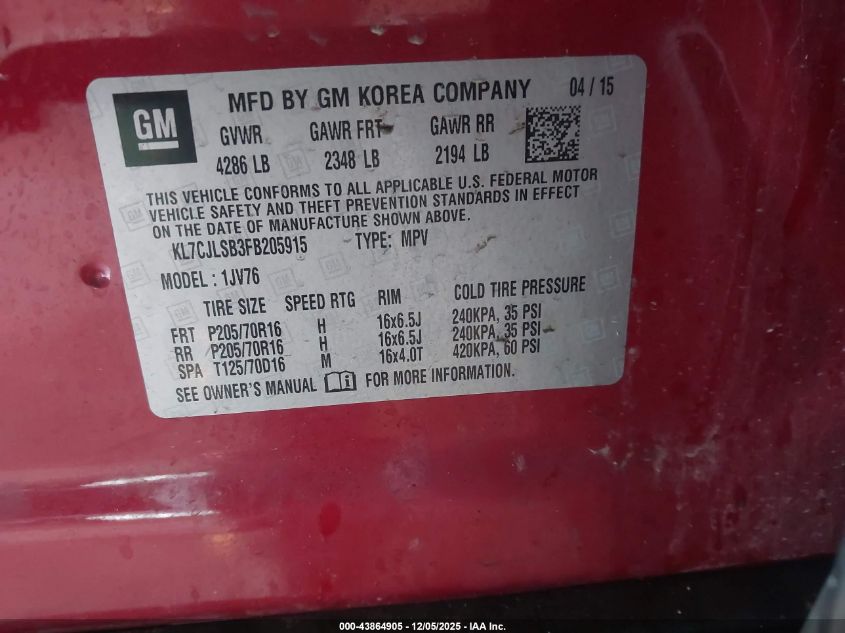 2015 CHEVROLET TRAX 1LT