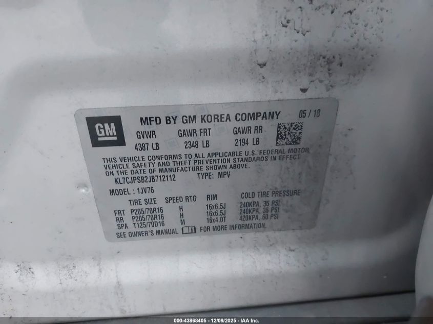 2018 CHEVROLET TRAX 2018 року Бензин, 1.4, Полный привод, vin - KL7CJPSB2JB712112 из США