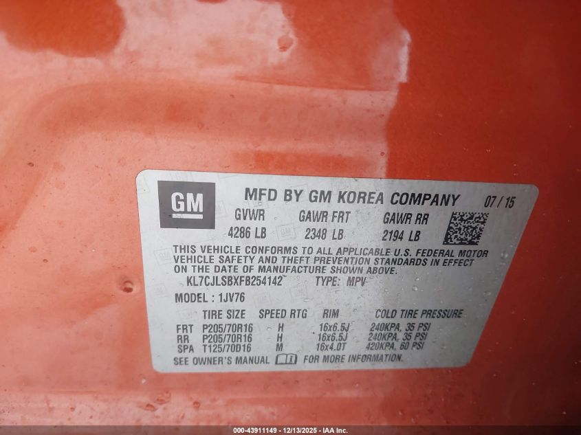 2015 CHEVROLET TRAX 1LT