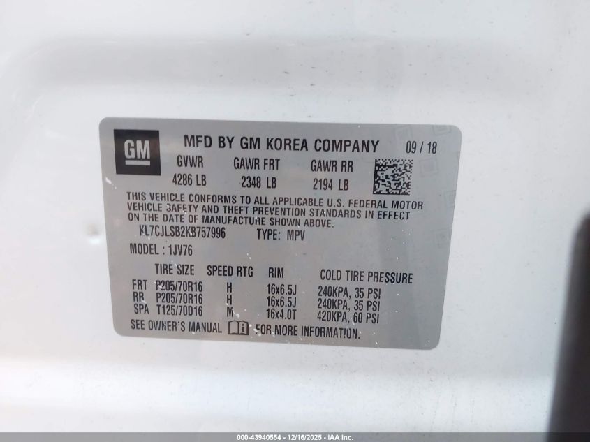Цвет Цилиндры 4Привод Передний приводVIN KL7CJLSB2KB757996Состояние НеизвестноПовреждения Неизвестно AutoRIA