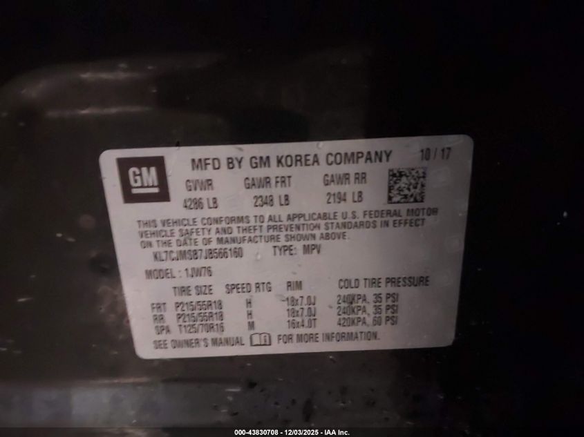2018 CHEVROLET TRAX 2018 року Бензин, 1.4, Передний привод, vin - KL7CJMSB7JB566160 из США