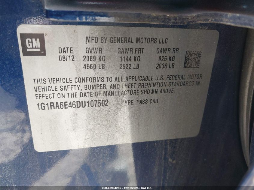 Цвет СинийЦилиндры 4Привод Передний приводVIN 1G1RA6E46DU107502Состояние НеизвестноПовреждения Обычный износ AutoRIA