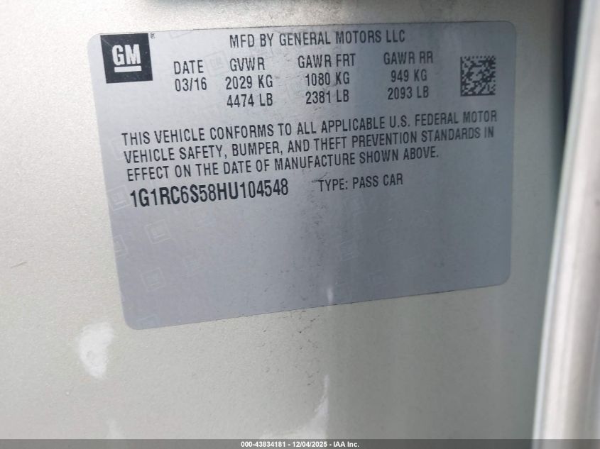 2017 CHEVROLET VOLT 2017 року Гибрид, 1.5, Передний привод, vin - 1G1RC6S58HU104548 из США