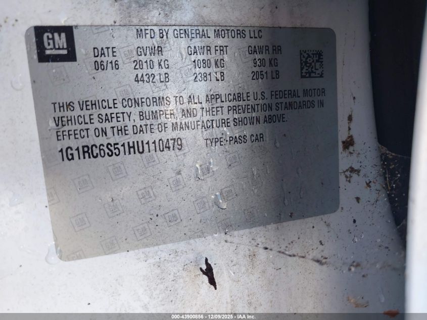 2017 CHEVROLET VOLT 2017 року Гибрид, 1.5, Передний привод, vin - 1G1RC6S51HU110479 из США