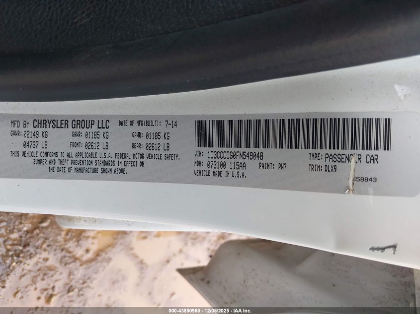 Цвет БелыйЦилиндры 6Привод Передний приводVIN 1C3CCCCG0FN549048Состояние СтационарноПовреждения Передняя или задняя AutoRIA