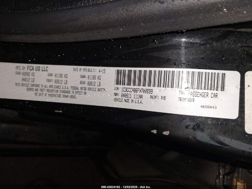 2015 CHRYSLER 200 2015 року Бензин, 2.4, Передний привод, vin - 1C3CCCAB6FN700899 из США