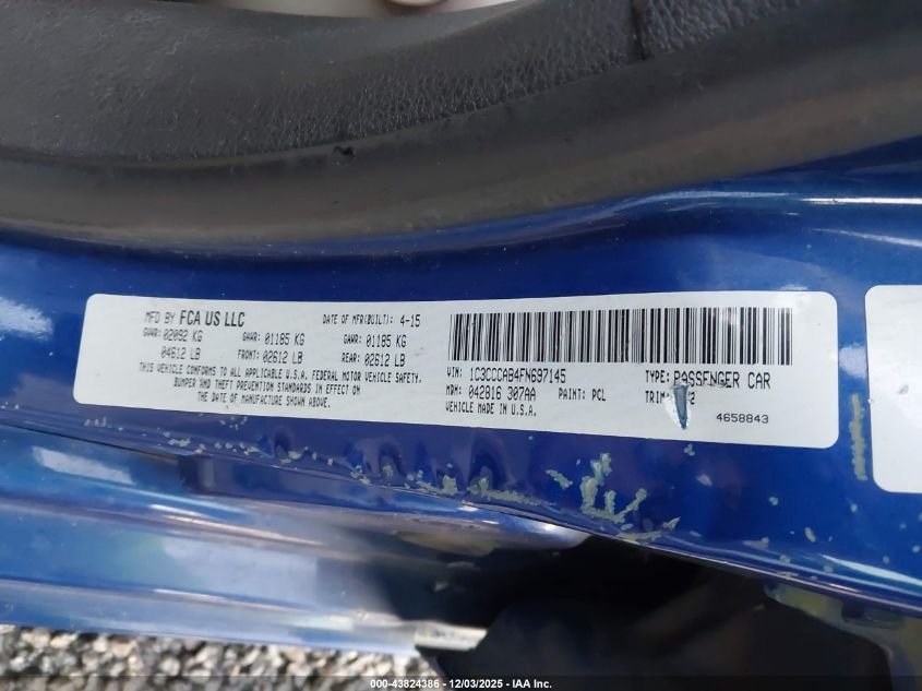 2015 CHRYSLER 200 2015 року Бензин, 2.4, Передний привод, vin - 1C3CCCAB4FN697145 из США