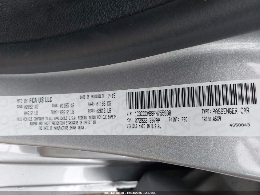 2015 CHRYSLER 200 2015 року Бензин, 2.4, Передний привод, vin - 1C3CCCAB8FN755838 из США