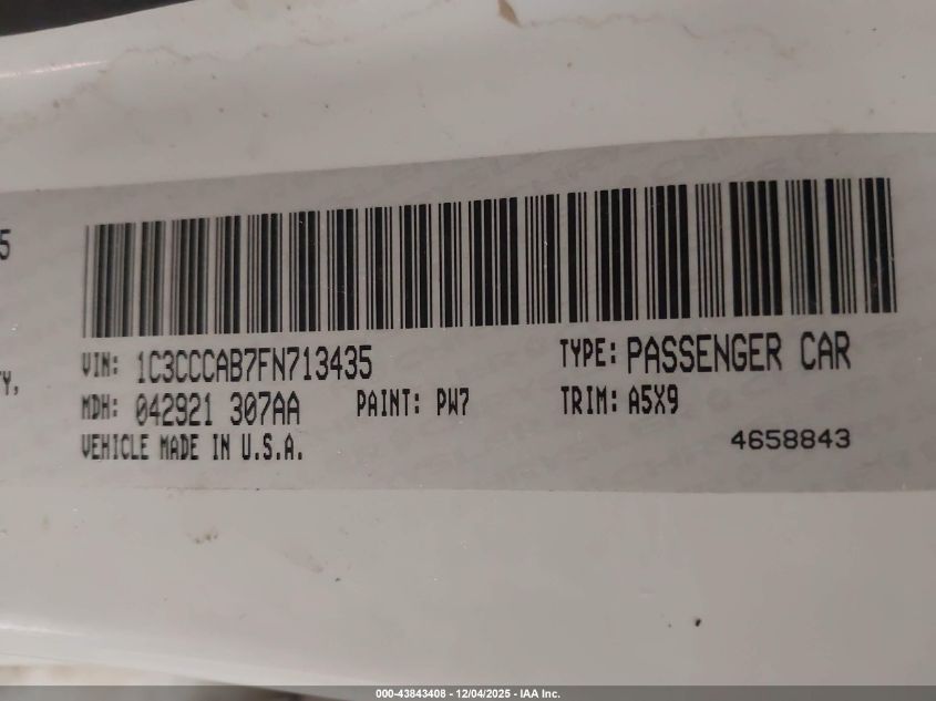 Цвет БелыйЦилиндры 4Привод Передний приводVIN 1C3CCCAB7FN713435Состояние Заводится и едет (проверено)Повреждения Передняя или задняя AutoRIA