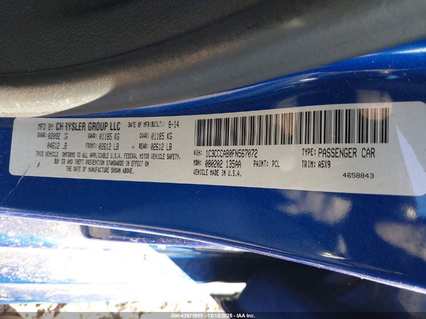2015 CHRYSLER 200 2015 року Бензин, 2.4, Передний привод, vin - 1C3CCCAB0FN567072 из США