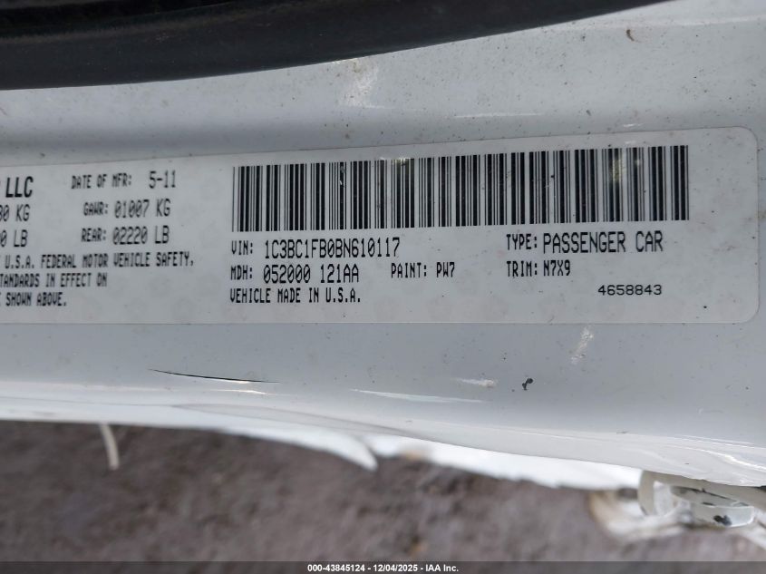 Цвет БелыйЦилиндры 4Привод Передний приводVIN 1C3BC1FB0BN610117Состояние Заводится и едет (проверено)Повреждения Левая сторона AutoRIA