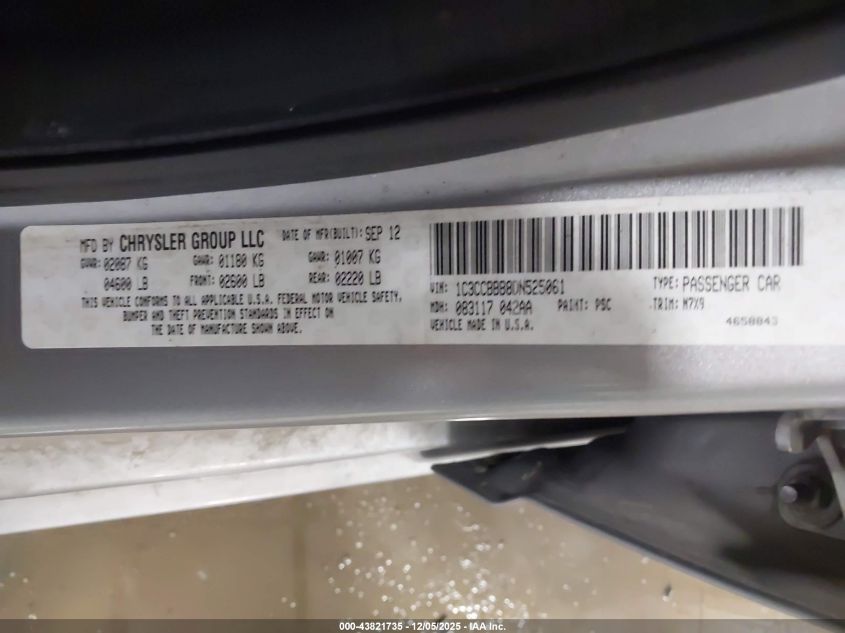 2013 CHRYSLER 200 2013 року Бензин, 2.4, Передний привод, vin - 1C3CCBBB8DN525061 из США