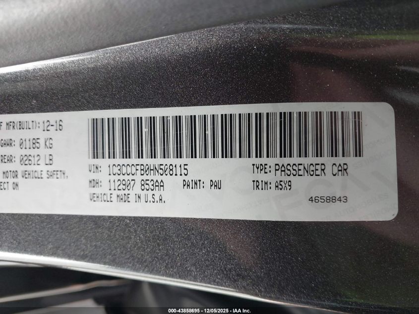 2017 CHRYSLER 200 2017 року Бензин, 2.4, Передний привод, vin - 1C3CCCFB0HN508115 из США