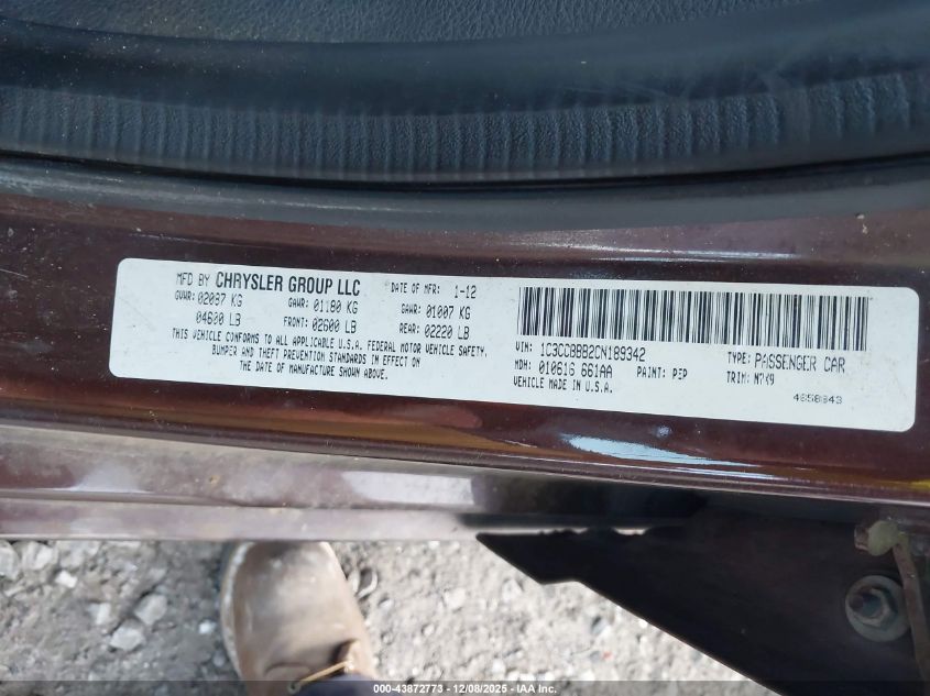 2012 CHRYSLER 200 2012 року Бензин, 2.4, Передний привод, vin - 1C3CCBBB2CN189342 из США