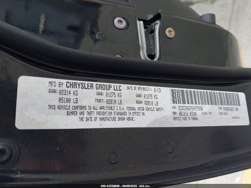 2013 CHRYSLER 300C 2013 року Бензин, 3.6, Задний привод, vin - 2C3CCADG7DH727658 из США