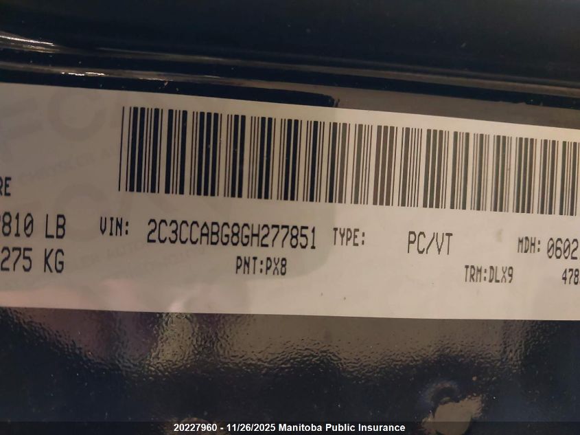 Цвет ЧерныйЦилиндры 6Привод Задний приводVIN 2C3CCABG8GH277851Состояние СтационарноПовреждения ПередняяДата аукциона 2025-12-10 AutoRIA
