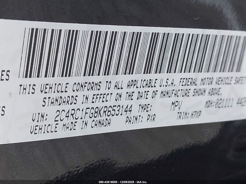 2019 CHRYSLER PACIFICA 2019 року Бензин, 3.6, Передний привод, vin - 2C4RC1FG8KR653144 из США