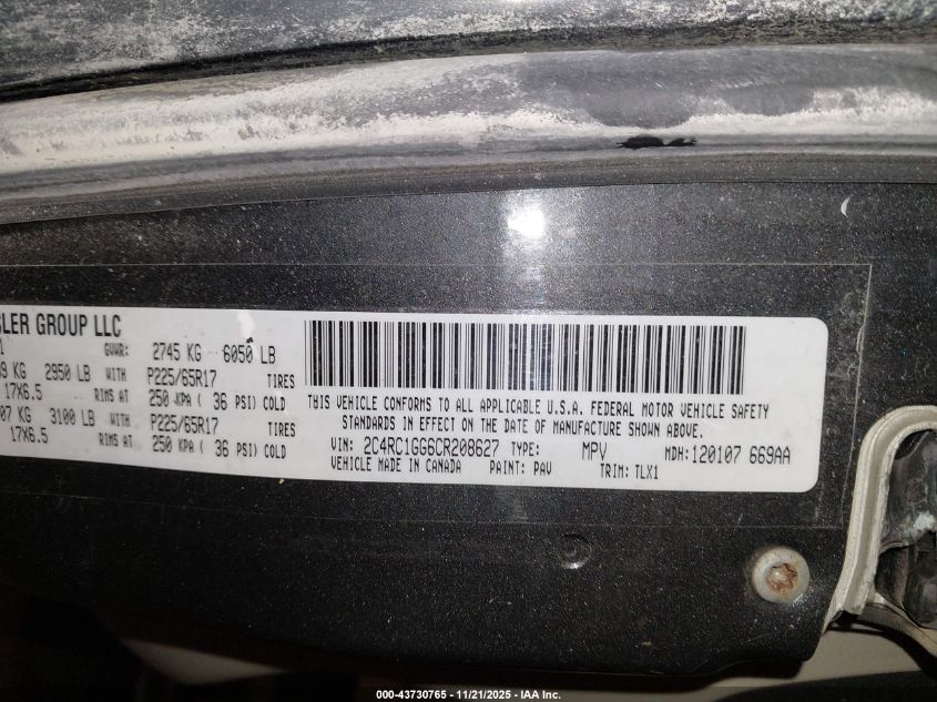 Цвет СерыйЦилиндры 6Привод Передний приводVIN 2C4RC1GG6CR208627Состояние Заводится и едет (проверено)Повреждения Передняя или задняя AutoRIA