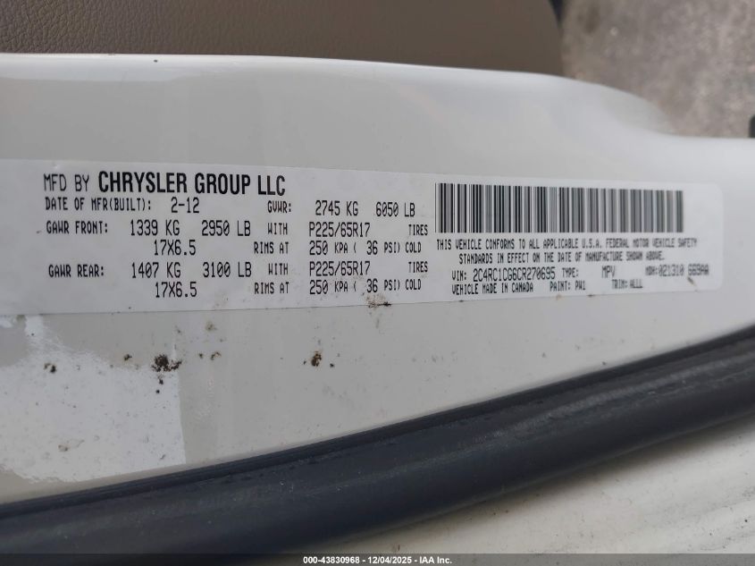 2012 CHRYSLER TOWN & COUNTRY TOURING L